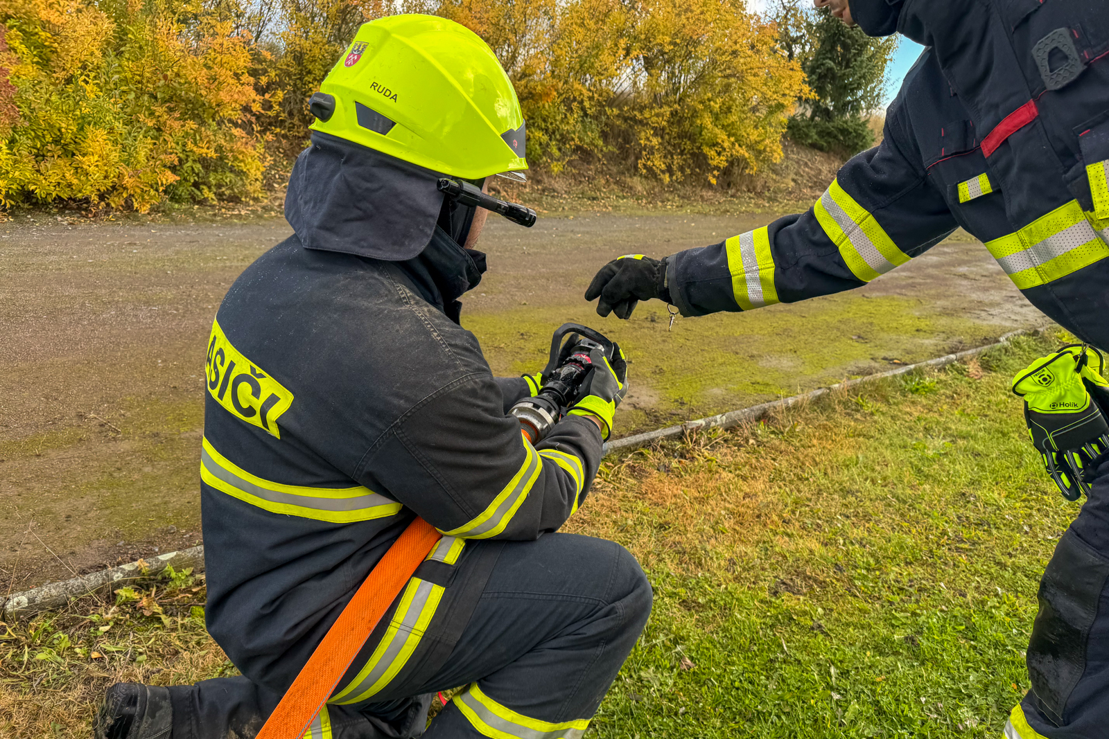 V neděli 19. října 2025 dopoledne se jednotka sešla k praktickému výcviku. Tématem byla bojová rozvinutí s využitím lehkých C-CC rozdělovačů a tvoření útočných proudů metodou „Cleveland“.