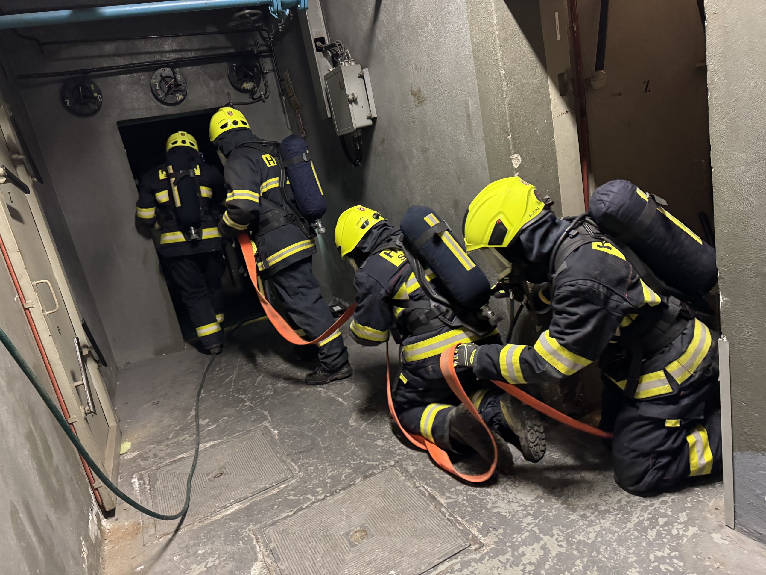 Prostor podzemního bunkru v Bílovci jsme v úterý v podvečer využili k pravidelném praktickému výcviku nositelů dýchací techniky.